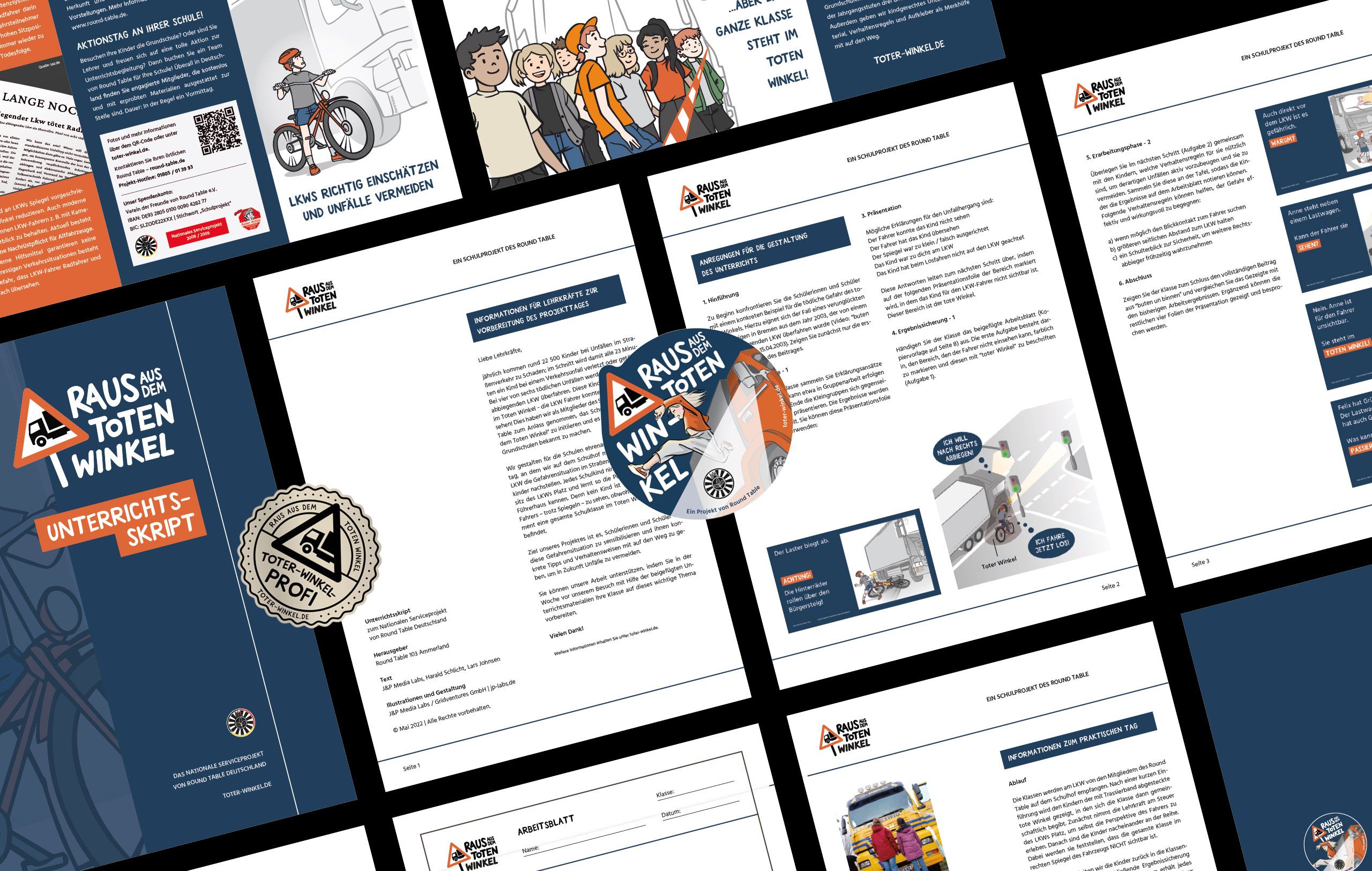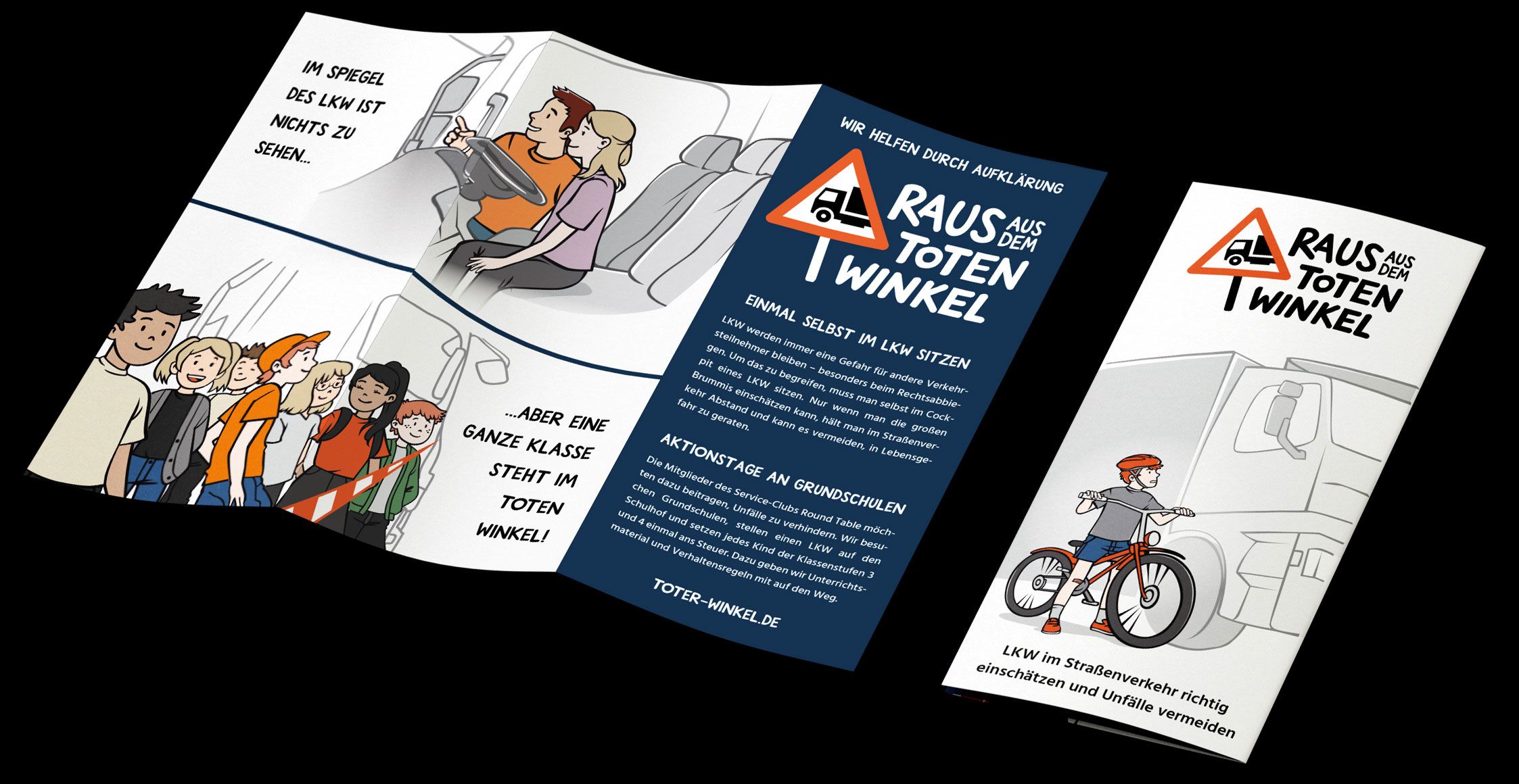 Das ehrenamtliche Projekt des Round Table, bei dem Grundschulkinder über die Gefahren des toten Winkels bei abbiegenden LKW informiert werden, haben wir mit lehrreichen und niedlichen Illustrationen und Unterrichtsmaterialien ausgestattet. Um das Branding abzurunden und kinderfreundlich zu gestalten, entwickelten wir eine eigene Schriftart, die „Radweg Font“, welche nun alle Print- und Onlinemedien verziert.