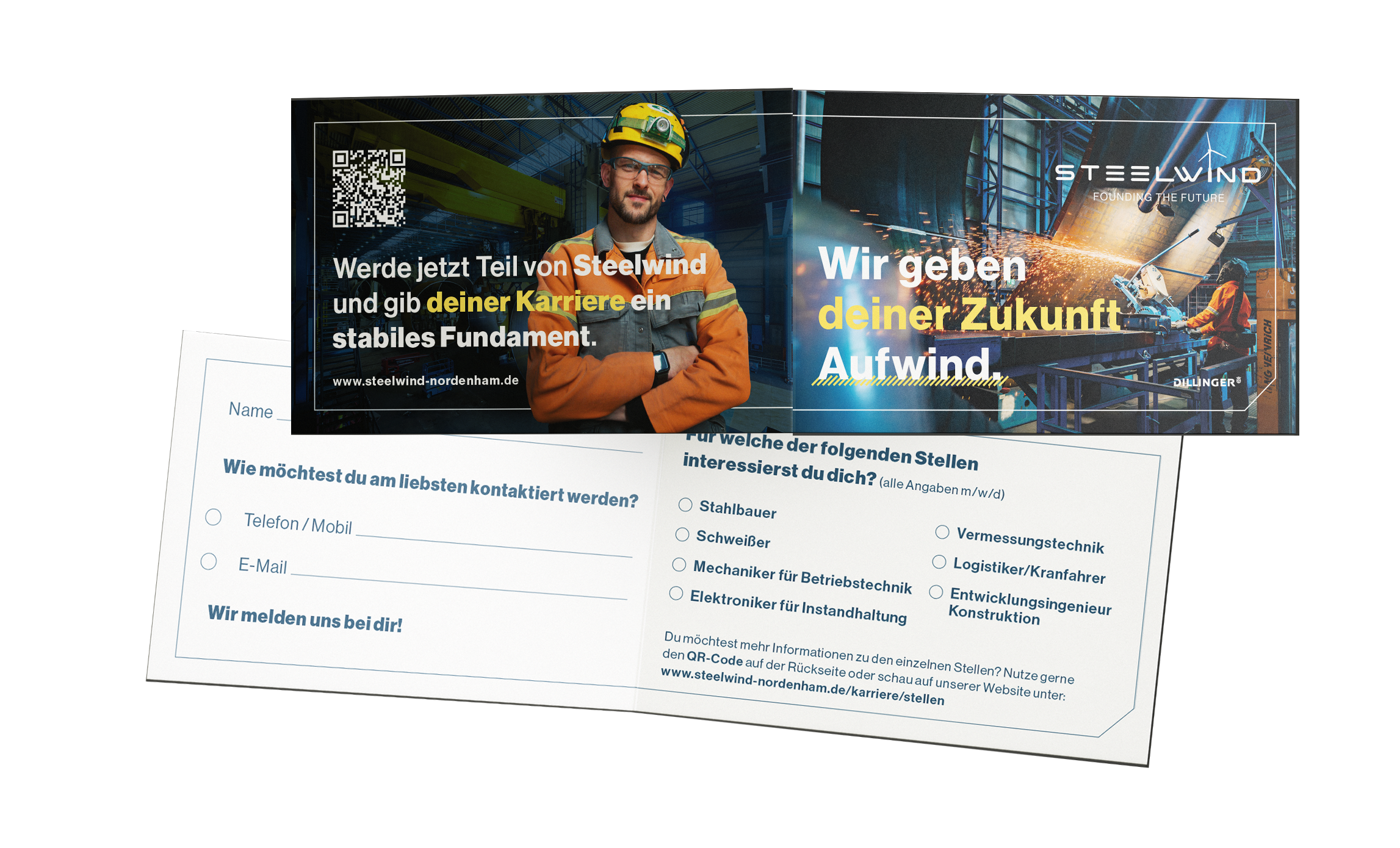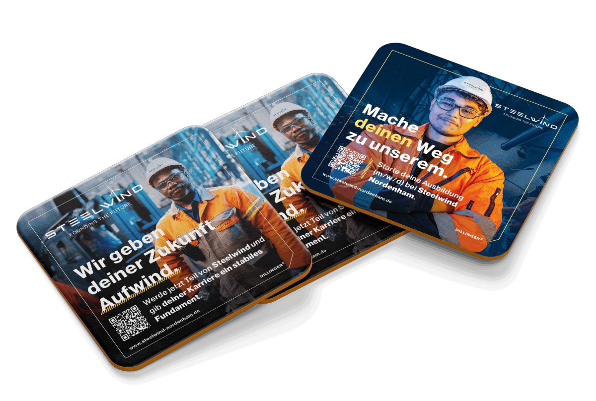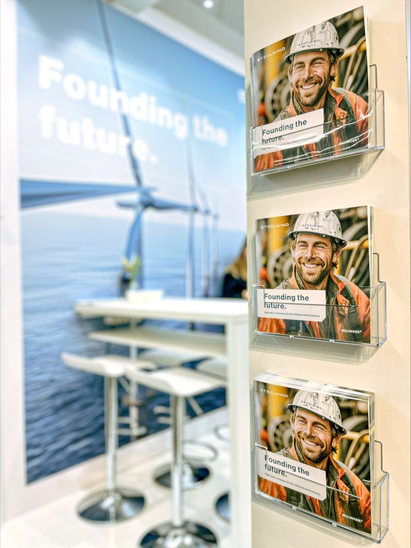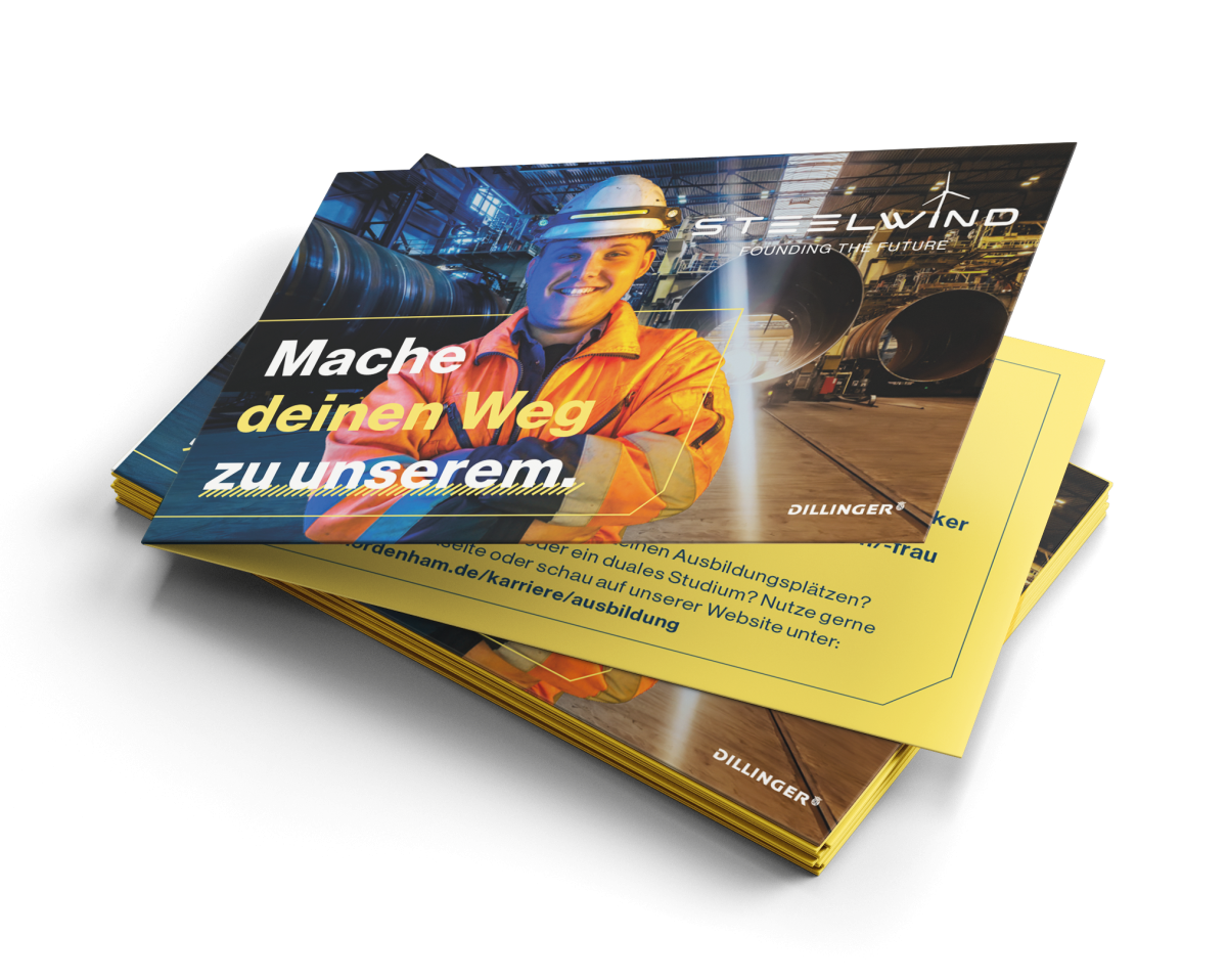 Als Steelwind Nordenham auf uns zukam, war schnell klar: Für ein Unternehmen, das Monopiles und Single-Piece-Fundamente von bis zu 2.400 Tonnen fertigt und als Teil der Dillinger Gruppe Maßstäbe im Offshore-Wind-Sektor setzt, braucht es ein Corporate Design, was diese Aspekte widerspiegelt.