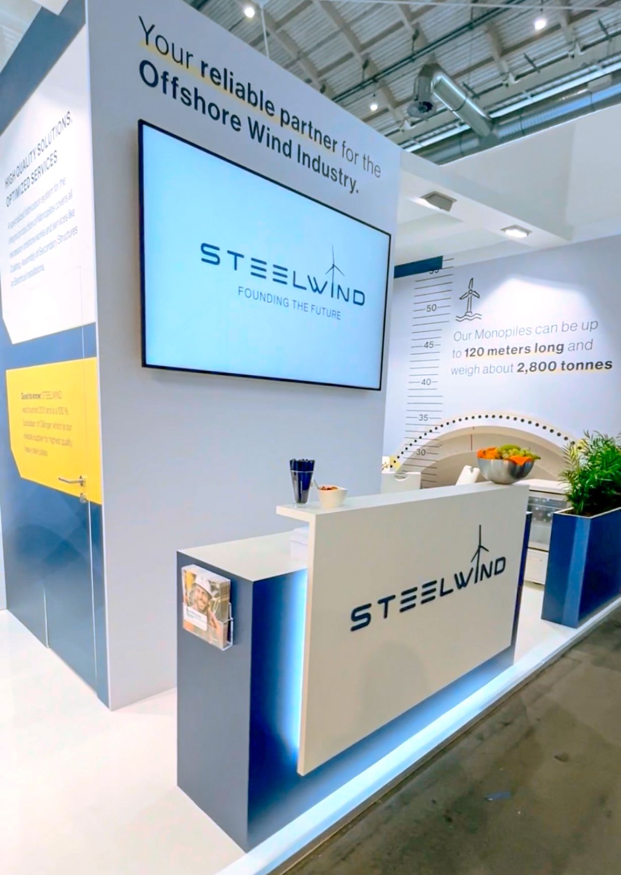 Für den Messeauftritt von Steelwind Nordenham entwickelten wir ein aufmerksamkeitsstarkes Standdesign, das technische Kompetenz und visuelle Klarheit verbindet. Klare Linien, kraftvolle Bildwelten und eine durchdachte Raumaufteilung machen die Markenidentität vor Ort erlebbar – modern, hochwertig und einladend zugleich.